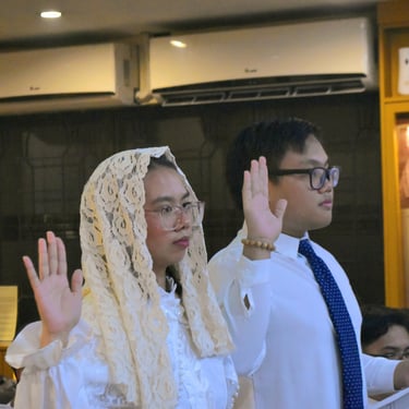 These practices ensured that each candidate approached the rite with purity of intention and a heart disposed to grace. Before the altar and the Holy Cross, the applicants were called by name. Standing before God and the community, they raised their hands and pronounced the Solemn Oath (adapted from the Orlovstvo Manual) With their hands placed over their hearts, each new member recited: “I… solemnly promise that as long as I am a member of the AYPM, I will everywhere and always be a true member in work and in life… a fearless and true Catholic, defender of the faith and of my people… Christus Vincit, Christus Regnat, Christus Imperat.” The Coordinator then confirmed the candidates as full members of the AYPM and led them in the Oath of Membership into the Cause for the Canonization of Blessed Ivan Merz, Inc., the spiritual family overseeing the AYPM in the Philippines. The Corporate President, by authority of the Diocese of Banja Luka, formally incorporated them into the spiritual family.